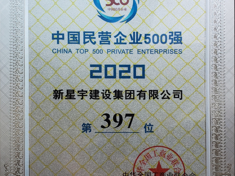2020中國(guó)民營(yíng)企業(yè)500強(qiáng)第397位